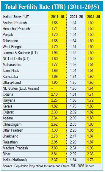 कुछ साल पहले डेनमार्क को घटती आबादी को देखते हुए...डू इट फोर डेनमार्क...केंपेन चलाना पड़ा था। जापान और साउथ कोरिया के हालात बेहद विकट है। चीन लाख कोशिशों के बावजूद परिवार बढ़ाने के लिए युवाओं को जगा नहीं पा रहा है। अमेरिका के प्रेसिडेंट डोनाल्ड ट्रंप 1 हजार डॉलर का चाइल्ड इंसेंटिव घोषित कर चुके हैं। लेकिन इतना दूर क्यों जाना। भारत में ही आंध्र प्रदेश के मुख्यमंत्री चंद्रबाबू नायडू ने अपने पिछले कार्यकाल में घटती आबादी के अर्ली ट्रेंड्स को पकड़ते हुए इसे रोकने के लिए एक्शन प्लान लाने की बात कही थी। भारत को अब तक डेमोग्राफिक डिविडेंड वाला देश माना जाता रहा है लेकिन यह किस तेजी से डेफिसिट (घाटा) में बदल रहा है इसका अंदाजा भारत सरकार के एक टेक्निकल ग्रुप की रिपोर्ट में कहा गया है। रिपोर्ट के अनुसार लगभग सभी राज्यों में कुल प्रजनन दर (टोटल फर्टिलिटी रेट — टीएफआर) के 2035 तक 2.1 के रिप्लेसमेंट लेवल से नीचे जाने का अनुमान है। सरकार के टेक्निकल ग्रुप ऑन पॉपुलेशन प्रोजेक्शंस (टीजीपीपी) की पॉपुलेशन प्रोजेक्शंस फॉर इंडिया एंड स्टेट्स 2011-2036 रिपोर्ट के अनुसार, भारत का कुल टीएफआर 2031-2035 के बीच केवल 1.73 रह जाएगा। वर्ष 2011-2015 के दौरान भारत का टीएफआर 2.37 था। हिमाचल प्रदेश, पंजाब, आंध्र प्रदेश, पश्चिम बंगाल और तेलंगाना के साथ-साथ जम्मू-कश्मीर और दिल्ली जैसे केंद्रशासित प्रदेशों में 2035 तक टीएफआर के घटकर 1.50 रहने का अनुमान है। विश्व स्वास्थ्य संगठन के अनुसार, टीएफआर दरअसल प्रतिमहिला बच्चों के जन्म की वह औसत संख्या है मौतों के कारण घटती आबादी को स्थिर रखने के लिए जरूरी है। संगठन के लिए आबादी को घटने से थामने के लिए प्रति महिला 2.1 जन्म होना जरूरी है। लगभग सभी राज्यों में 2035 तक टीएफआर के 2.1 से नीचे जाने की आशंका है। महाराष्ट्र और तमिलनाडु का टीएफआर 1.51 तक पहुंचने का अनुमान है, जबकि कर्नाटक और उत्तराखंड में यह 1.60 रह सकता है। उत्तर-पूर्वी राज्यों (असम को छोडक़र) में टीएफआर के लगभग 1.61 रहने का अनुमान है, जबकि असम में यह स्तर 1.83 रह सकता है। बिहार ऐसा एकमात्र राज्य होगा, जहां 2035 तक टीएफआर 2.38 प्रति महिला के स्तर के ऊपर रहने की संभावना जताई गई है।